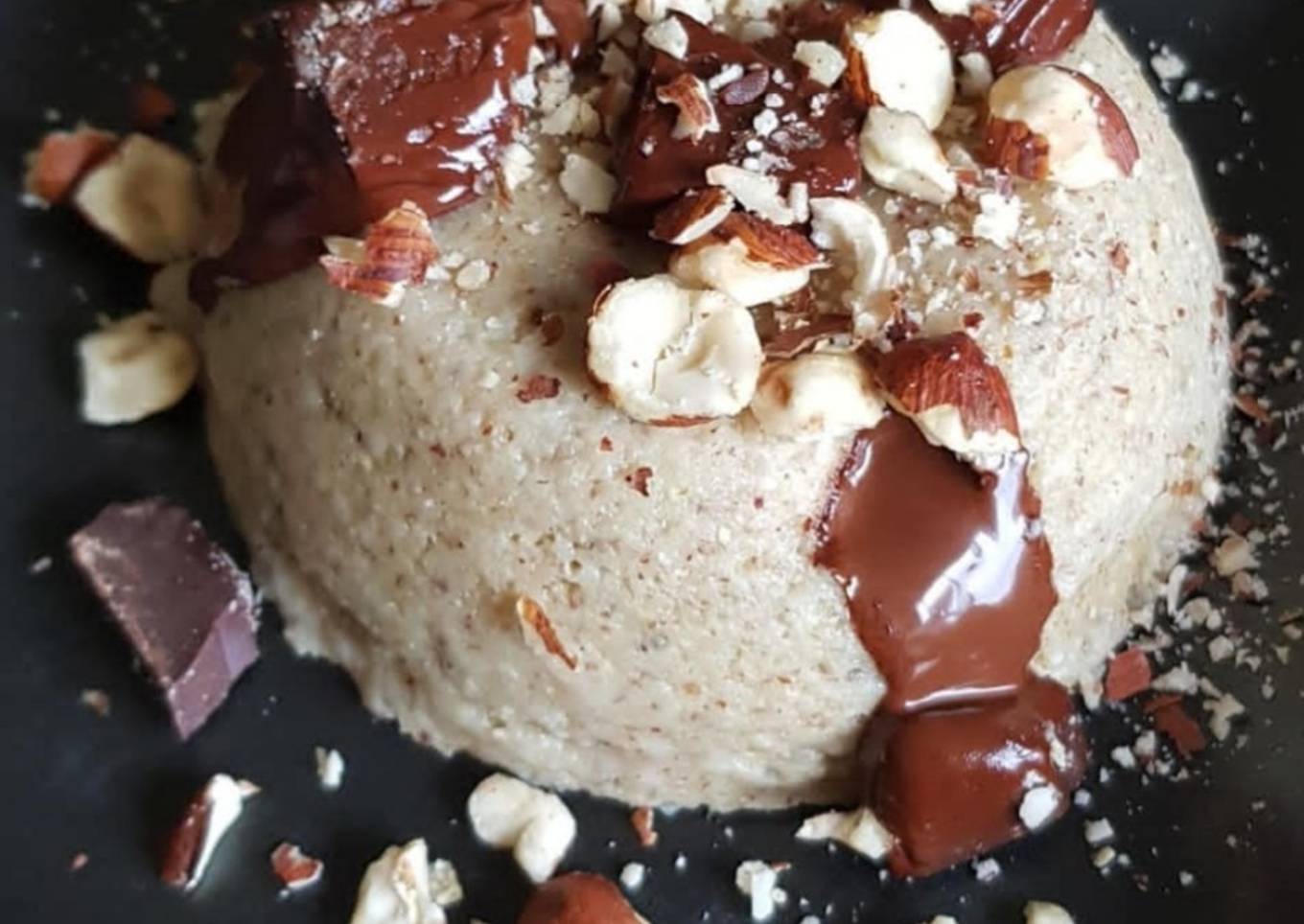 - Démouler le bol sur une assiette ajoutez les noisettes concassées laisser refroidir qq minutes et déguster