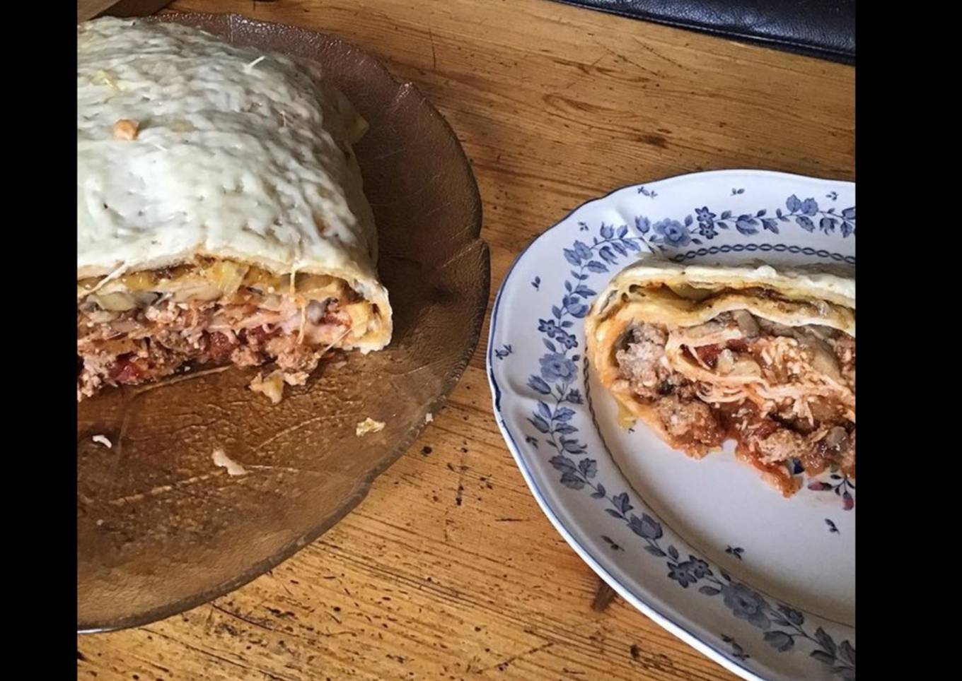 Italian flatbread farci en roulé au veau oignons caramélisés champignons fromage et épices