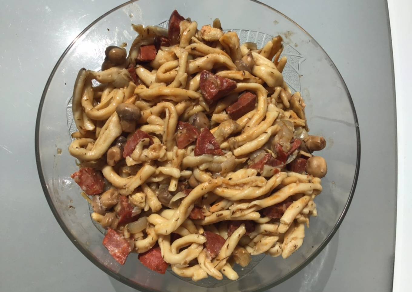 Maccheroni au chorizo champignons et coeurs d artichauts