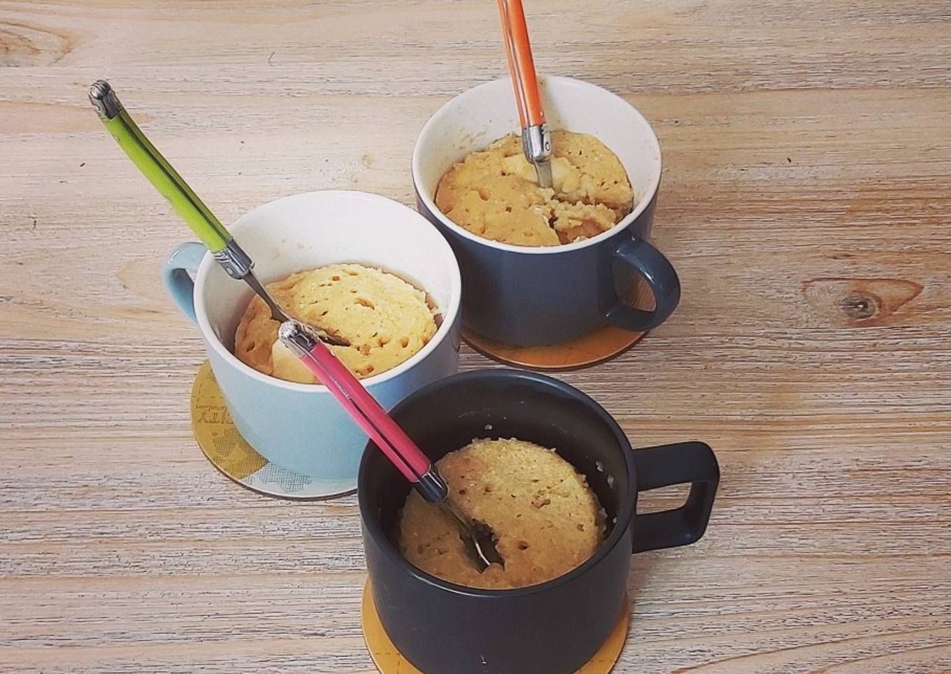 - Verser dans des moules ou des mugs et faire cuire au micro-ondes pendant 3 à 5 minutes (en fonction de la puissance du four et du nombre de mugs que vous mettez en même temps).