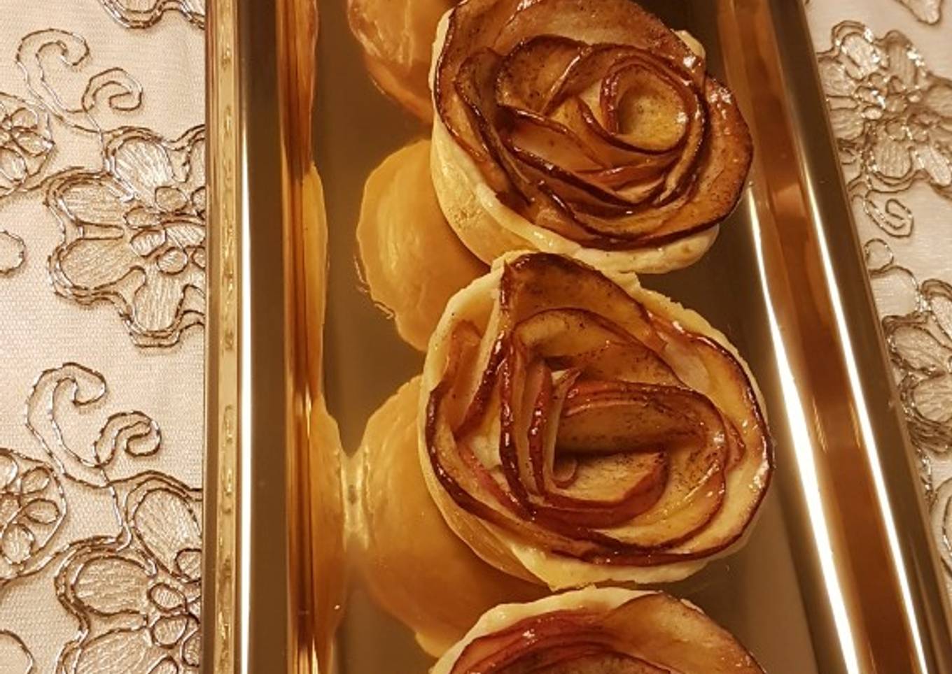 - Mettez la crème pâtissière dans les moules et ajoutez les tranche de pomme enroulée